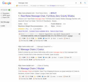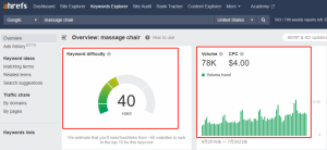 我们以Ahrefs工具,以关键词 Massage chair(按摩椅) 为例演示