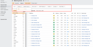 这个过滤器可以用来过滤掉你所有不想看到的内容,按条件查找,比如流量范围,单词数字,点击数次,PCP等